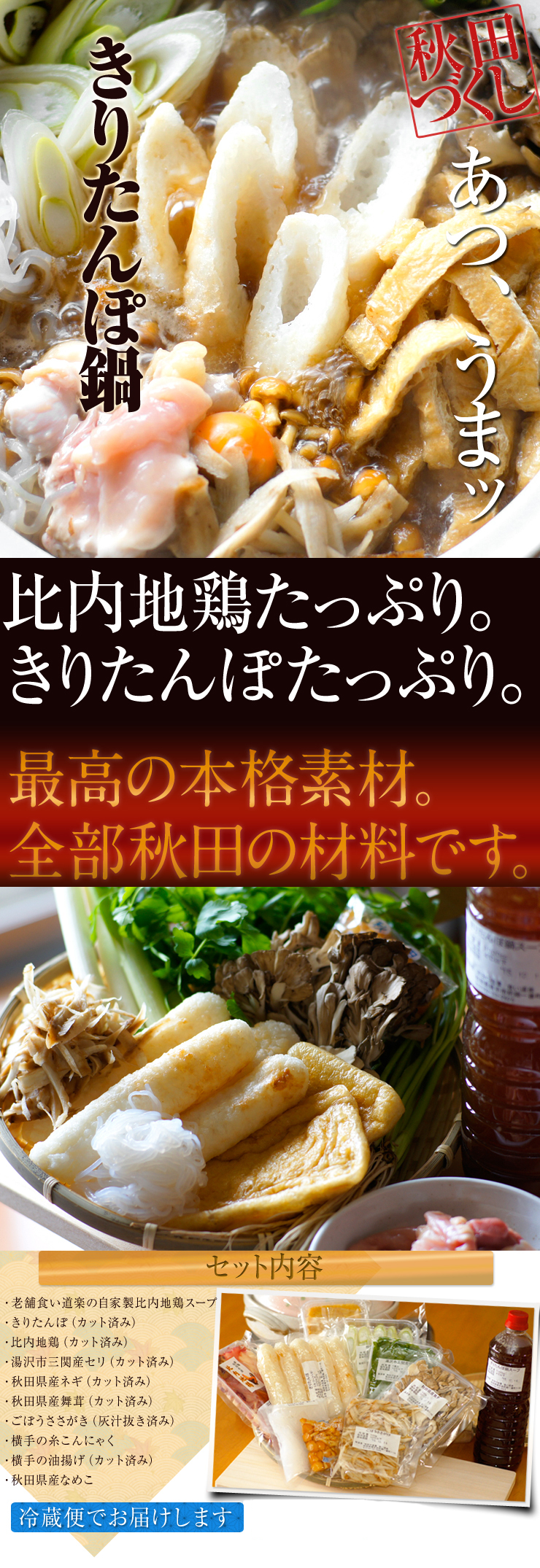 新米秋田こまち100%のきりたんぽは型崩れがしにくく、お米の美味しさが良くわかります。